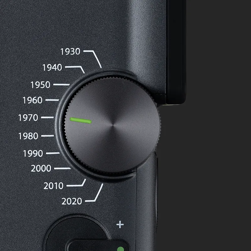 Eras Dial™ ile zamanı geriye sar. 100 yıllık stilin içinden seçimini yap; cebindeki küçük bir zaman makinesi gibi. 1930’ların grenli ve nostaljik dokusundan 2020’lerin rafine ve modern çizgisine uzanan her dönem, kadrajına hem kendi havasını hem de sinematik bir ses efektini katıyor.